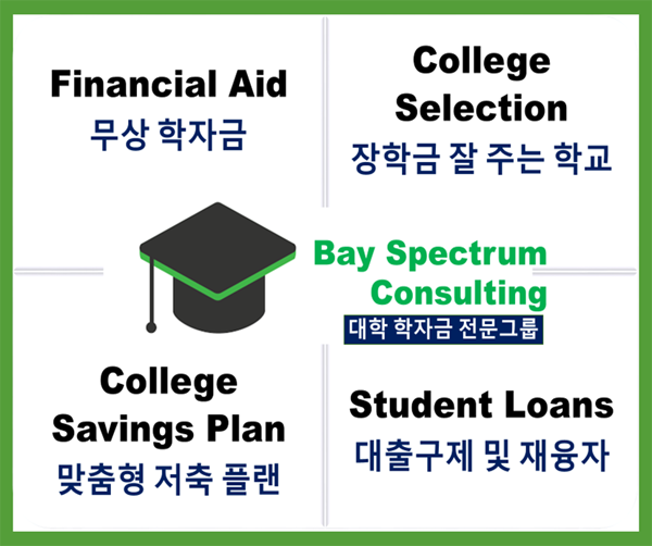 울타리 종합보험에서는 대학 학자금 컨설팅을 위해서, 학자금 전문 기업 Bay Spectrum Consulting을 별도 회사로 설립하여 고객들에게 무상학비 혜택은 물론 추가적인 재정보조를 받을 수 있도록 전문 서비스를 제공하고 있습니다.